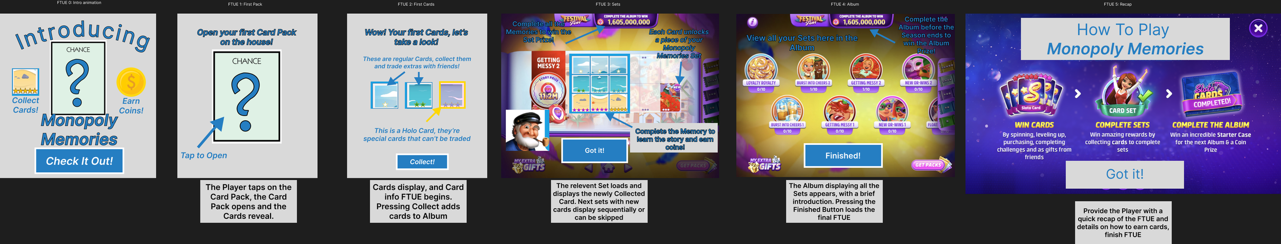 After much brainstorming with the team, we landed on a seasonal card collection feature to anchor the new meta going forward. They are proven revenue drivers with strong ability to be utilized by live ops both in other casino titles and in the mobile space in general. 2D cards also prove to be significantly lighter on the team to generate than full 3D scenes, particularly when seasons can be spaced out to quarterly or longer events. To maintain the connection to and celebrate the old 3D content that would be deprecated, we leaned into a scrapbook theme where individual cards combine to form photos/memorabilia related to those scenes/characters/storylines until players have sufficiently transitioned to the new system.